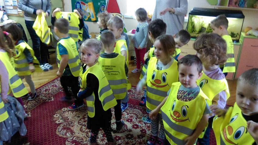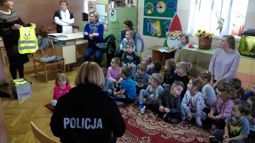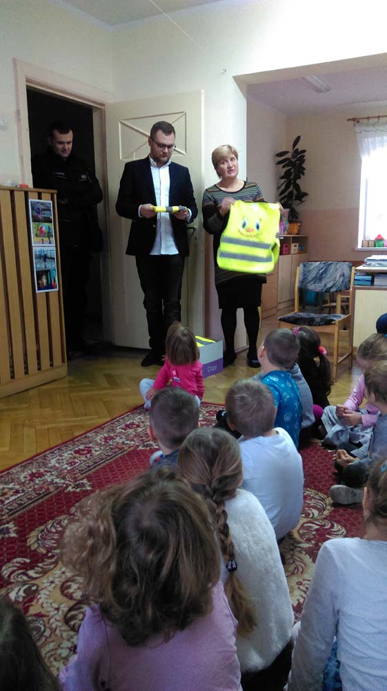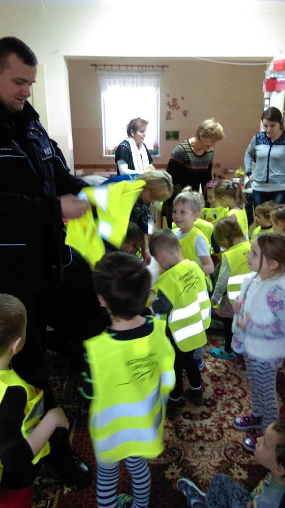 Wizyta Policji i wręczenie kamizelek odblaskowych